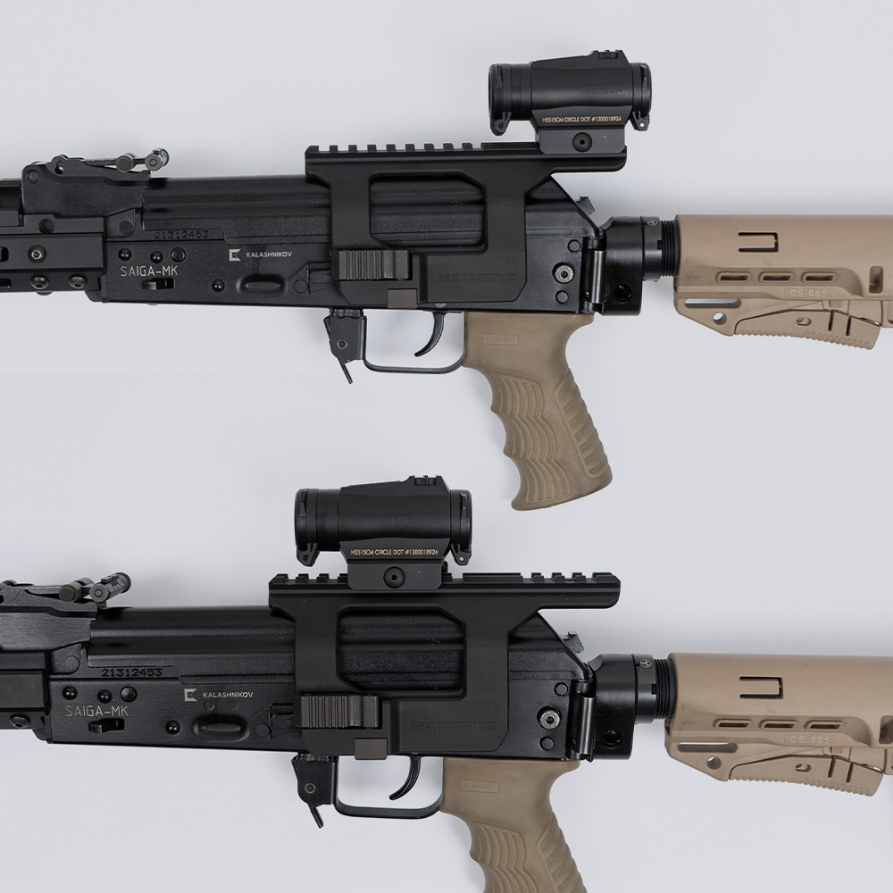 Идеально подходит для установки призматических прицелов. Обеспечивает установку на комфортом расстоянии от глаза. Кронштейн не блокирует механические прицельные приспособления