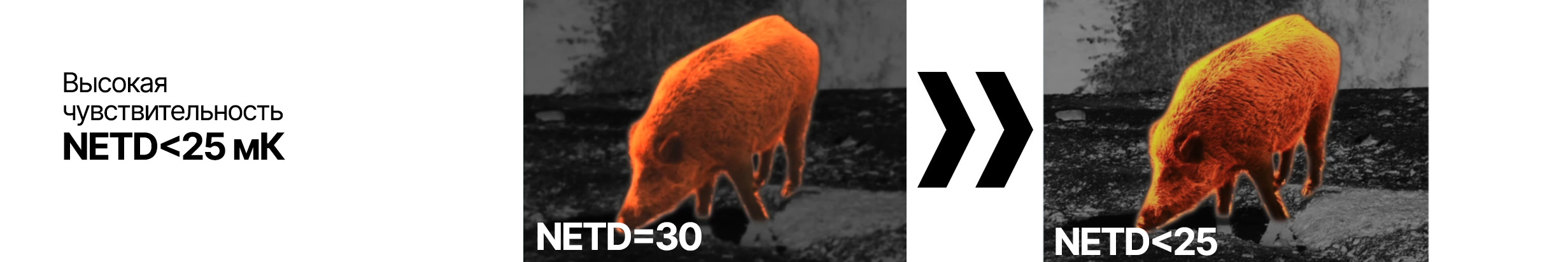 Высокая термочувствительность позволяет распознавать температурные различия всего 0,01–0,1°C, обеспечивая уверенное различение цели в экстремальных условиях — метели, дожде или тумане. Критически важно для обнаружения объектов при слабом тепловом контрасте с окружающей средой.
