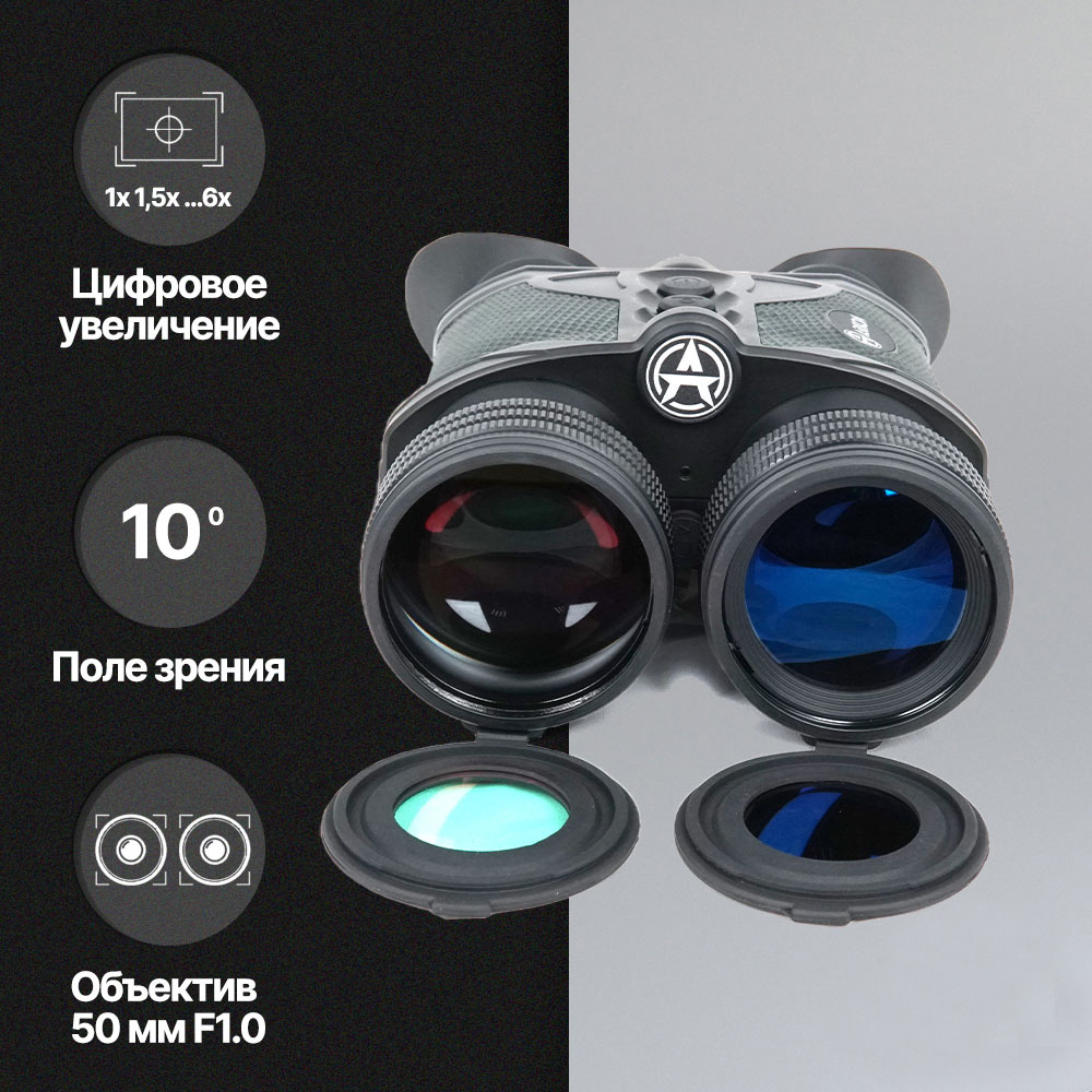 Объективы 50 мм f1.0 позволяют собирать максимум инфракрасного излучения даже от объектов с минимальным тепловым контрастом. Базовое увеличение 6× в сочетании для детального изучения удаленных целей. Точная работа в сложных погодных условиях — при наличии пыли, дождя или сильного ветра.