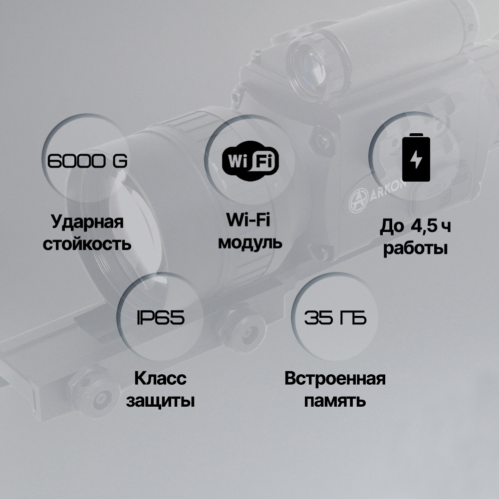 Для визуального комфорта предлагается пять цветовых режимов: реалистичный цветной, контрастный чёрно-белый, имитация спектра зелёного и янтарного ЭОП, а также классический монохром. Специально для эффективного прицеливания реализован режим «Картинка в картинке» (PiP): часть экрана увеличивает центральный участок, сохраняя общий обзор цели.