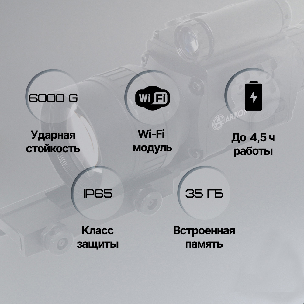 Для визуального комфорта предлагается пять цветовых режимов: реалистичный цветной, контрастный чёрно-белый, имитация спектра зелёного и янтарного ЭОП, а также классический монохром. Специально для эффективного прицеливания реализован режим «Картинка в картинке» (PiP): часть экрана увеличивает центральный участок, сохраняя общий обзор цели.
